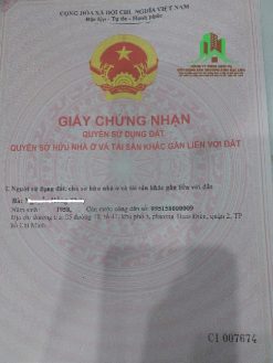 - Diện tịch đất: Tổng diện tích: 767,20 m2 (Phần trước giáp lộ nhựa 1,0m: Ngang:4,00 m x Dài: 20.00 m = 80.0 m2; – Phần phía sau: Ngang:33,0 m x Dài: 21.38 m = 705,54) m2