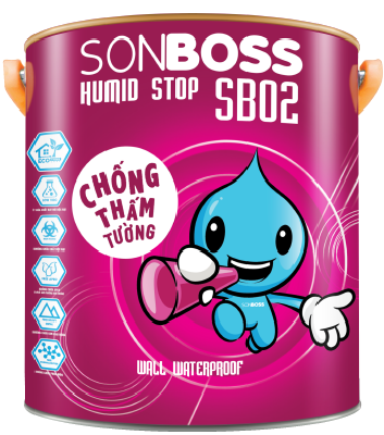 SONBOSS HUMID STOP WALL WATERPROOF SB02 – SƠN CHỐNG THẤM TƯỜNG SB02 là sản phẩm với công thức tiên tiến có chức năng kép, kết hợp công nghệ chống thấm trực tiếp lên tường, bê tông cùng nhiều màu sắc tạo nên vẻ đẹp hoàn mỹ. Đặc biệt, màng sơn có thể co giãn và che lấp các vết nứt vừa và nhỏ. Sản phẩm không cần pha loãng, chỉ cần quậy đều trước khi sử dụng, giúp chống thấm và tính năng kháng kiềm cao, có thể thi công trực tiếp lên bề mặt tường mới mà không cần dùng bột trét và sơn lót trước. Ngoài ra, sơn cũng có các tính năng khác như chống bám bụi, chống sự sinh trưởng của rong rêu và nấm mốc, thích hợp cho những vùng có khí hậu ẩm và mưa nhiều.